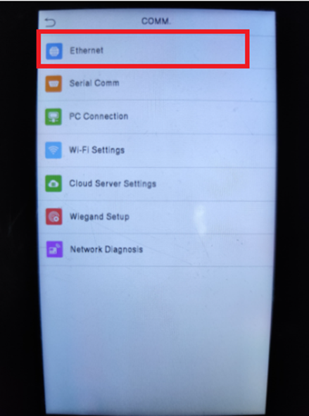 Pada SmartAC 1 tekan tombol menu lalu pilih comm settings dan Ethernet