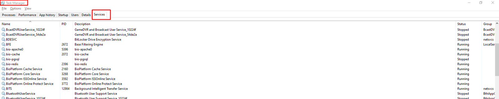 - Stop Bioplatform Online Protect Service.