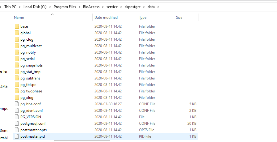 - Buka direktori …\BioSecurity\service\zkpostgre\data.