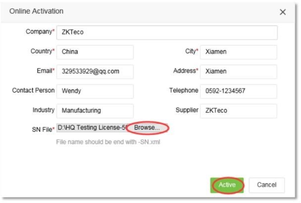 >Isi informasi dari tabel yang perlu diisi, klik browse lalu pilih file XX_SN.xml yang didapat dari sales, klik active button, lalu software sudah teraktivasi.
