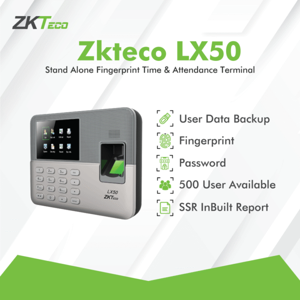 ZKTeco LX50 adalah mesin absensi sidik jari berkualitas tinggi yang dirancang untuk kebutuhan absensi karyawan di kantor, toko, atau usaha kecil menengah. Dengan desain yang modern dan teknologi canggih, LX50 menawarkan solusi efisien dan praktis untuk mencatat kehadiran secara otomatis.